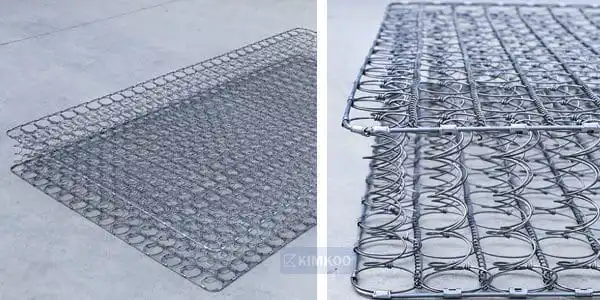 It is a support system made by assembling multiple hourglass-shaped steel springs into a complete spring unit. The springs are connected using spiral/helical wires, and the outer frame is reinforced by border rods, forming a stable and durable structure.