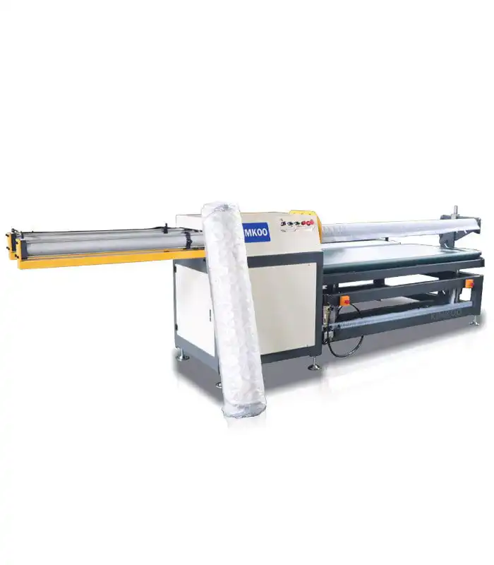 Оснащен удобным PLC и интуитивной панелью управления для простой настройки параметров и быстрой рулонной упаковки матрасов.